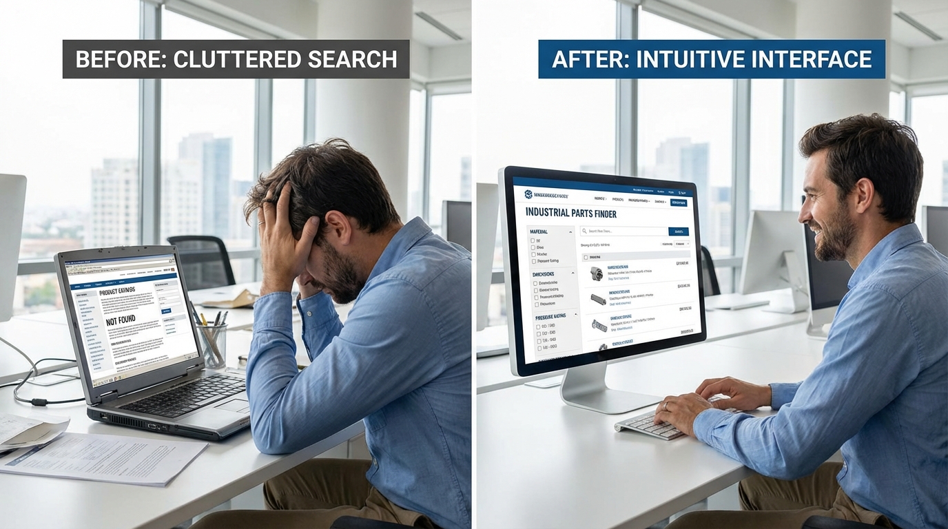 ERAVIDASの絞り込み検索機能では、製品カテゴリの選択からスペック条件の指定まで、段階的に候補を絞り込むことができます。顧客は自分の要件に合致する製品だけを効率的にリストアップできます。